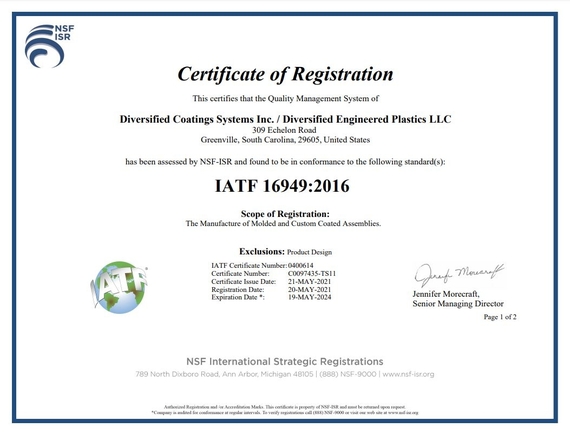 • QS9000 Certification Phase 1 and Phase 2 completed